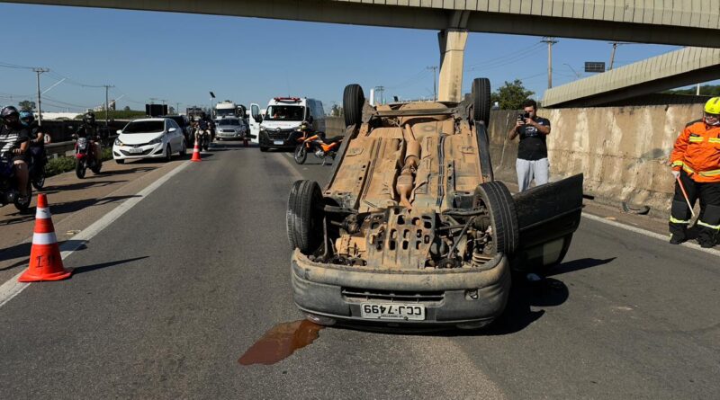 Segundo informações do motorista, ele perdeu o controle do carro e acabou colidindo contra a contenção de concreto no canteiro central, o que levou ao capotamento.