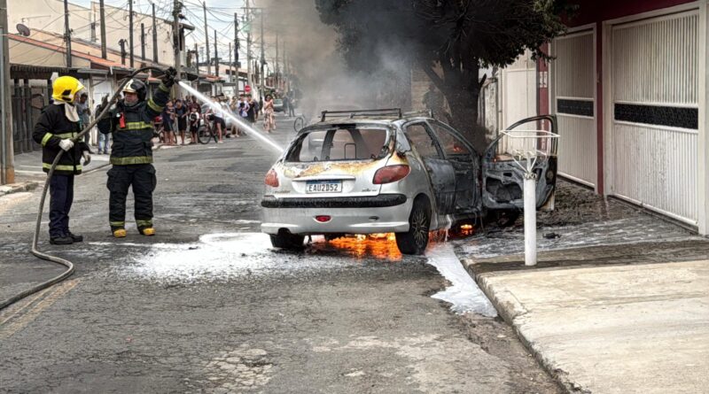 De acordo com as informações, o chamado foi registrado pelos telefones 153, da Guarda Civil Municipal, e 193, do Corpo de Bombeiros, após relatos de que o carro estava sendo consumido pelas chamas.