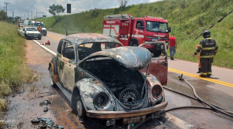 Fusca pega fogo na SP-75