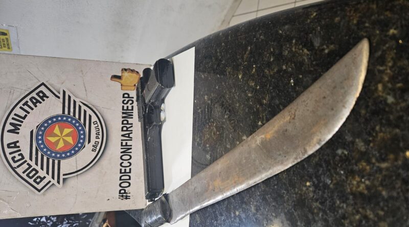Os policiais se deslocaram até a casa do suspeito, que inicialmente negou possuir qualquer arma de fogo, afirmando ter usado apenas um facão de jardim durante o desentendimento. Após insistência da equipe, o homem acabou confessando que mantinha um simulacro escondido e indicou o local onde o guardava. O objeto foi encontrado e apreendido.