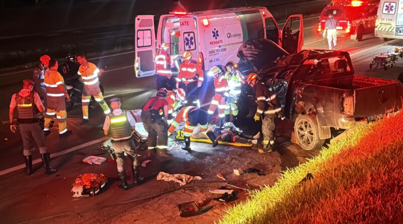 Com a força do impacto, os dois ocupantes foram ejetados para fora da caminhonete. Uma das vítimas caiu na faixa três de rolamento, enquanto a outra foi arremessada para o canteiro central.