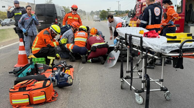 De acordo com informações iniciais, a condutora seguia no sentido norte da via quando, por motivos ainda a serem apurados, colidiu a motocicleta que conduzia na traseira de um veículo de passeio. Com o impacto, a vítima foi arremessada ao solo e teve o braço preso entre a roda, a liga leve e o motor da motocicleta.