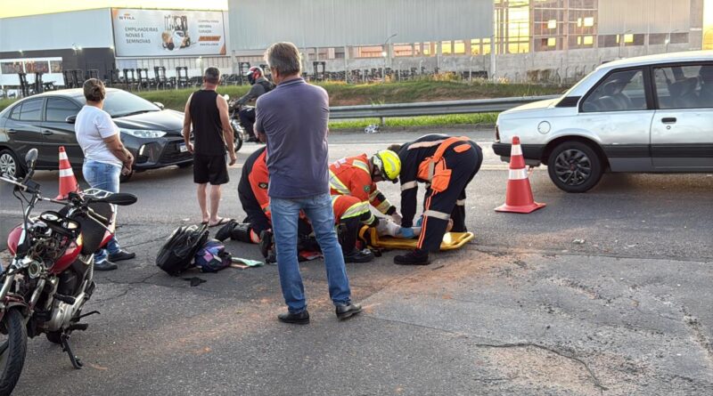 De acordo com informações apuradas no local, o motorista de uma picape Fiat Strada trafegava pela alça de acesso quando, ao realizar uma conversão para entrar na Fábrica Irani, acabou colidindo com uma motocicleta Honda Titan, de cor vermelha, que seguia pela mão contrária da via.