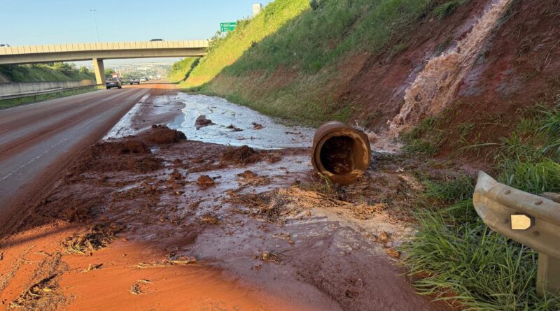 Com o rompimento, a água passou a jorrar com força e escorreu por um barranco às margens da rodovia, provocando acúmulo de lama na pista. Apesar da situação, não houve registro de transtornos no trânsito no trecho afetado.
